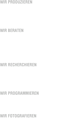 Werbung, Websites, Zeitschriften, Image- und Produktfilme, Bücher, Anzeigen, Visitenkarten, Briefpapier und vieles mehr.